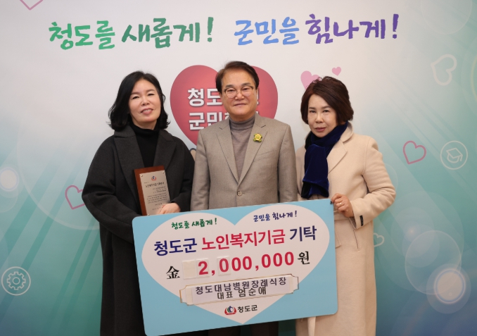 지난 12일, 청도대남병원장례식장 엄순애 대표는 “어르신들의 복지 증진에 조금이나마 도움이 되길 바란다”며 노인복지기금 200만 원을 기탁했다.