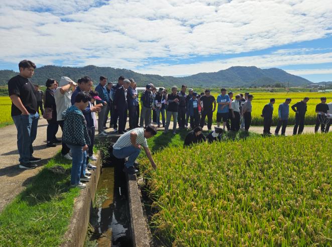 이어 농업인들은 전라남도농업기술원의 벼 품종 시험포장을 찾아 일반벼 신품종을 비롯한 20여 종을 둘러보고, 흰잎마름병 저항성 품종 증식 현장을 견학하며 우수 품종 재배 방안에 관한 의견을 나눴다.