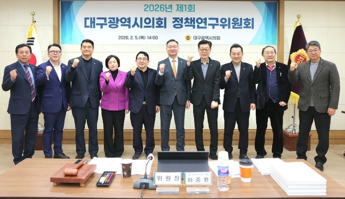 [파이낸셜경제=김지훈 기자] 대구광역시의회는 2월 5일 오후 2시, 시의회 3층 회의실에서 ‘2026년 제1회 대구광역시의회 정책연구위원회’를 개최해, 2025년에 완료된 의원 정책연구의 추진 과정과 내용에 대한 적절성 등을 중점 점검하고, 2026년 상반기의 연구과제로 ‘대구·경북 의회통합 방안 연구’를 심의·의결했다.