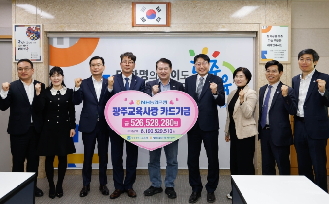 [파이낸셜경제=김예빈 기자] 광주시교육청은 지난 20일 본청 상황실에서 NH농협은행으로부터 지난해 광주교육사랑카드 적립금 5억2천652만원을 전달받았다.