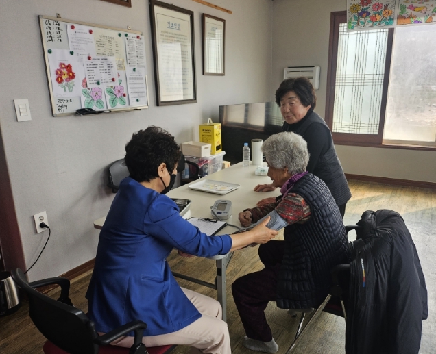 | ▲ 포항시 남구보건소는 24일 장기면 금곡리 경로당에서 지역 어르신과 주민들을 대상으로 의료나눔 봉사활동을 펼쳤다. |