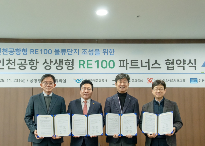 [파이낸셜경제=김기보 기자] 인천국제공항공사는 20일 오전 공항청사 회의실에서 물류단지 입주기업 3개社와 함께 ‘상생형 RE100 파트너스 업무협약(MOU)’을 체결했다고 밝혔다.