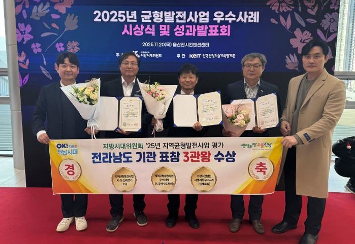 [파이낸셜경제=김예빈 기자] 전라남도는 대통령직속 지방시대위원회에서 주최하는 2025년 균형발전사업 우수사례 시상식에서 전국에서 유일하게 3개 부문을 모두 수상했다고 밝혔다.
