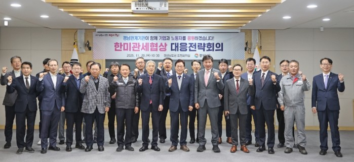 경남도는 20일 도청에서 ‘한미 관세협상 대응 전략회의 - 마스가 프로젝트 대응’를 열고, 조선·자동차·철강·가전 유관기관‧기업 관계자 등 25명이 참석한 가운데 사업 추진 과정에서 발생한 현장 문제를 논의했다.