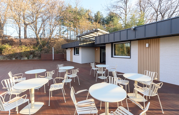 내부공간 전반은 원목을 중심으로 차분하게 연출해 자연과 조화를 이루는 아늑한 쉼터로 완성했으며, 실내외를 잇는 구조를 통해 계절과 날씨 변화에 따른 자연경관을 감상할 수 있도록 했다.