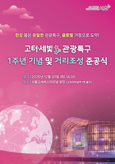 [파이낸셜경제=김예빈 기자] 서울 서초구는 고터·세빛 관광특구 지정 1주년을 맞아 오는 30일 14시 서울고속터미널 광장 일대에서 관광특구의 본격적인 도약을 알리는 '고터·세빛 관광특구 1주년 기념 및 거리조성 준공식'을 개최한다고 밝혔다.
