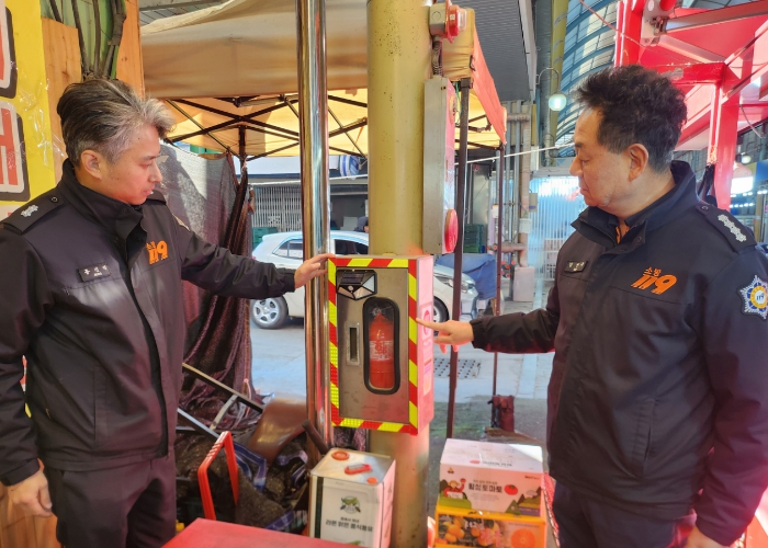 또 관계자·상인들 화재 예방 대책을 논의한 뒤 전통시장 내 공용소화기함에 태양열 센서등과 반사띠를 부착해 야간 식별성을 개선했다.