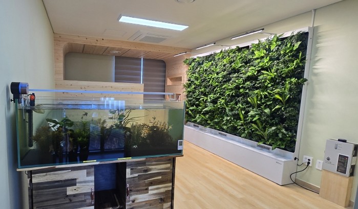 또한 심신안정실에는 수직정원 외에도 리클라이너 소파, 안마의자, 수족관 등이 함께 마련돼 직원들이 긴장을 풀고 재충전할 수 있는 휴식공간으로 활용될 예정이다.