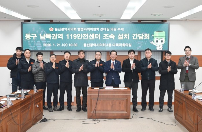 이날 간담회는 동구 남목 지역의 119안전센터가 없어, 화재 및 구조·구급 상황 발생 시 소방차, 구급차의 출동 지연 등 지역 주민의 소방 서비스 불편 문제를 신속히 해결하는 차원에서 마련됐다.