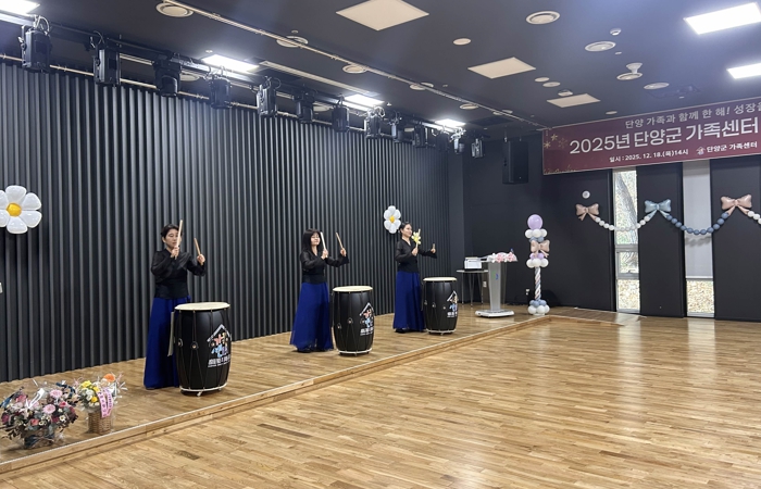 [파이낸셜경제=김기보 기자] 단양군가족센터는 지난 18일, 센터 연간 성과보고회에서 결혼이주여성 자조활동 프로그램 '소리의 만남' 참여자들이 준비한 식전무대 난타공연을 성공적으로 진행했다.
