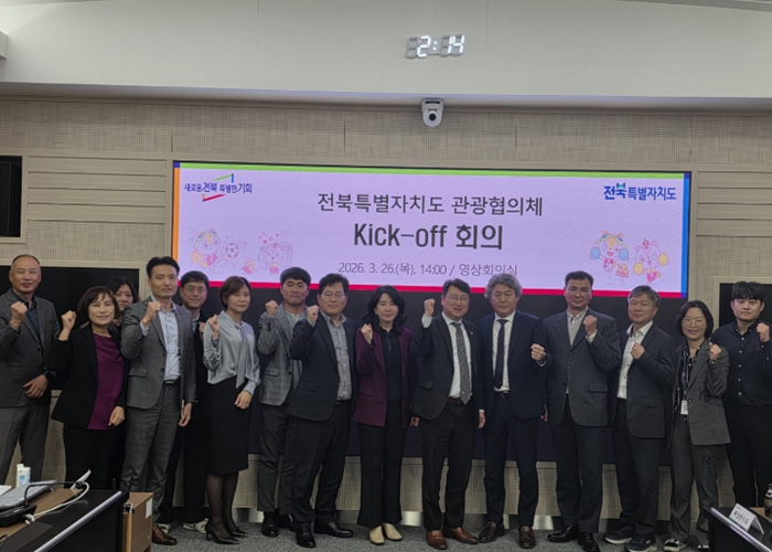 도는 26일 도청 영상회의실에서 신원식 문화체육관광국장 주재로 8개 부서장과 전북연구원, 전북문화관광재단 관계자 등 25명이 참석한 가운데 ‘2026년 전북특별자치도 관광협의체 킥오프 회의’를 개최했다.