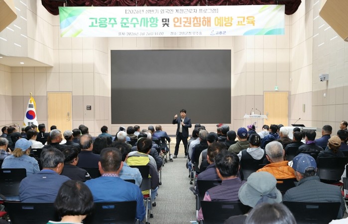 [파이낸셜경제=김영란 기자] 고흥군은 26일 군청 우주홀에서 외국인 계절근로자 제도의 안정적 운영을 위해 2026년 상반기 계절근로자 프로그램 고용주 교육을 실시하고, 근로환경 개선과 인권 보호를 위한 지원 대책을 추진하고 있다고 밝혔다.