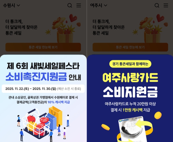 여주시는 통큰 세일 행사 기간 동안 지역화폐로 누적 20만 원 이상 결제 시 선착순 2,400명에게 ‘여주사랑카드 소비지원금’ 1만 원을 지급하는 이벤트를 연다.
