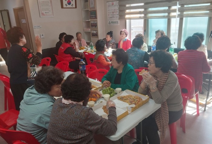 | ▲ 부산 중구 무한리필봉사단, 어르신께 사랑의 피자 식사 대접 |