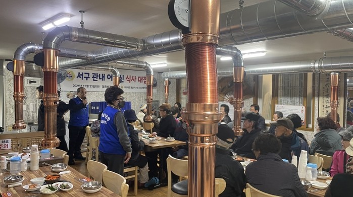 [파이낸셜경제=박영진 기자] (사)바르게살기운동 서구협의회(회장 백창욱)는 지난 23일 연말을 맞아 지역 내 어르신 130명을 초청해 ‘어르신 특식데이’행사를 성황리에 개최했다. 이번 행사는 어르신들의 건강과 복지 증진을 위해 마련됐으며, 이날 행사에 참여한 어르신들은 든든한 식사와 함께 이웃과 정겨운 담소를 나누며 뜻깊은 시간을 보냈다.