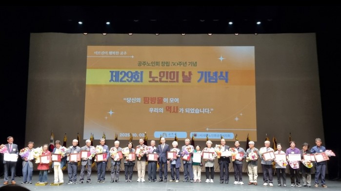 [파이낸셜경제=김영란 기자] 공주시는 2일 공주문예회관에서 각 기관·단체장과 노인회 회원 등 500여 명이 참석한 가운데 ‘제29회 노인의 날 기념행사’를 개최했다고 밝혔다.