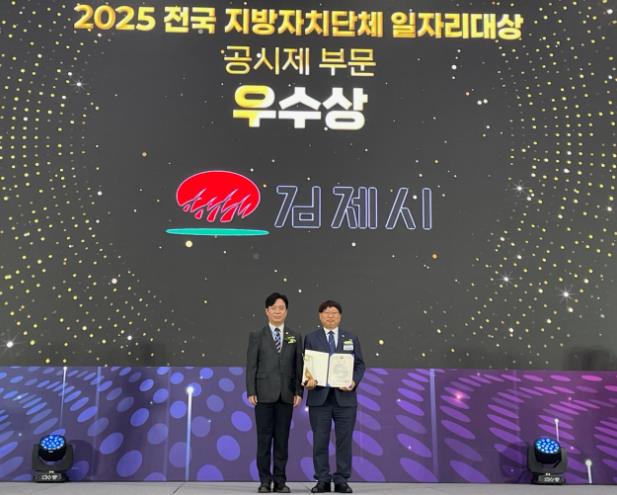 [파이낸셜경제=김예빈 기자] 김제시는 30일 청주 오스코에서 열린 '2025년 전국 지방자치단체 일자리대상'시상식에서 공시제 부문 우수상을 수상하며 고용노동부 장관 표창과 함께 인센티브 사업비 5백만원을 확보했다고 밝혔다.