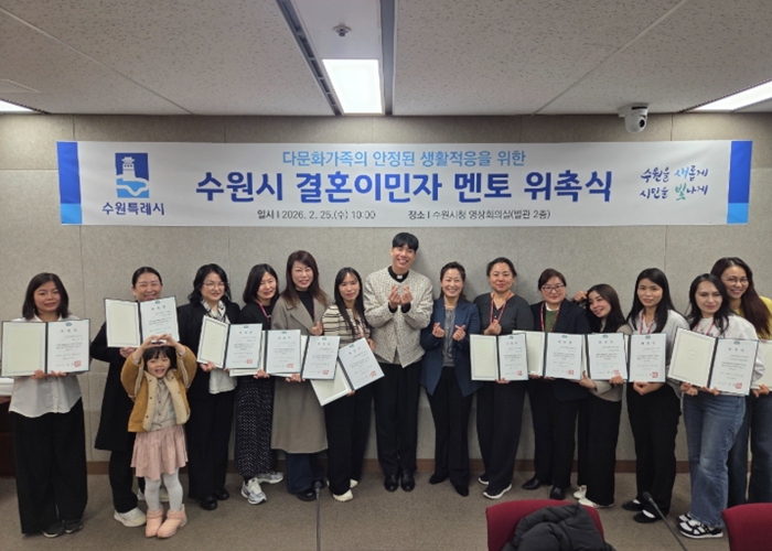 [파이낸셜경제=김기보 기자] 수원특례시가 25일 시청 영상회의실에서 ‘2026년 결혼이민자 멘토 위촉식’을 열고 선배 이민자 멘토 15명을 위촉했다.