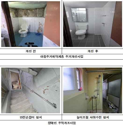 아동 가구에 대해서는 노후된 화장실을 개선하고 아동의 독립된 공간 조성을 위한 침대, 옷장 등의 물품 지원으로 아동들이 건강하고 안전한 환경에서 성장할 수 있도록 생활 환경을 개선했다.