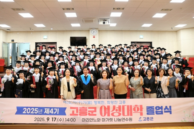 [파이낸셜경제=김예빈 기자] 고흥군은 지난 17일 고흥군 여성대학 제4기 졸업식을 개최하고, 여성 리더로서 지역사회를 이끌어갈 88명의 졸업생을 배출했다고 밝혔다.
