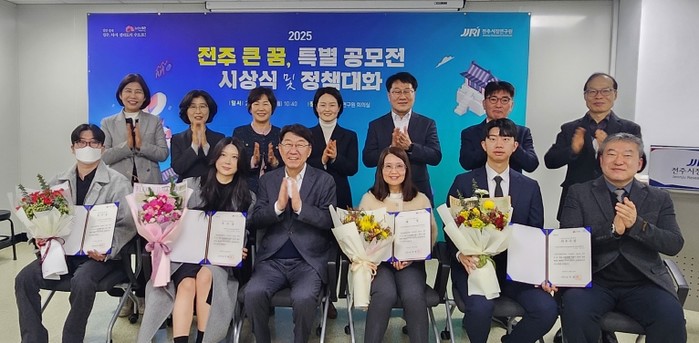 [파이낸셜경제=김예빈 기자] 전주시정연구원(원장 박미자)은 22일 연구원 회의실에서 ‘2025 전주 큰 꿈 특별 공모전 시상식 및 정책 대화’를 개최했다.
