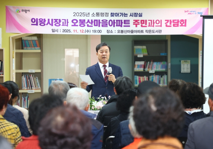 [파이낸셜경제=김영란 기자] 의왕시는 11월 12일 오봉산마을 아파트 작은도서관에서 ‘찾아가는 시장실’을 열고 아파트 주민들과 함께 시정 현안과 생활불편사항에 대해 소통하는 시간을 가졌다.