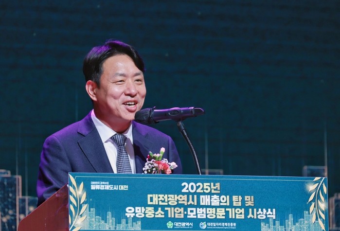 [파이낸셜경제=김영란 기자] 대전시는 3일 유성구 도룡동 대전컨벤션센터 제1전시관에서‘2025년 매출의 탑 및 유망중소기업‧모범명문기업 시상식’을 개최했다.