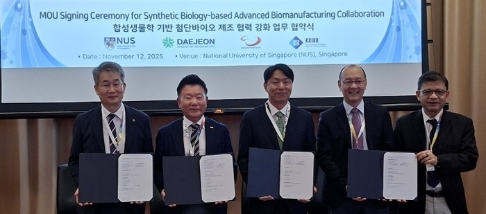 [파이낸셜경제=김영란 기자] 대전시는 합성생물학 분야에서 세계적 선도기관인 싱가포르 국립대(NUS)와 첨단 바이오제조 공동연구 및 국제협력을 위한 업무협약(MOU)을 12일 체결했다.