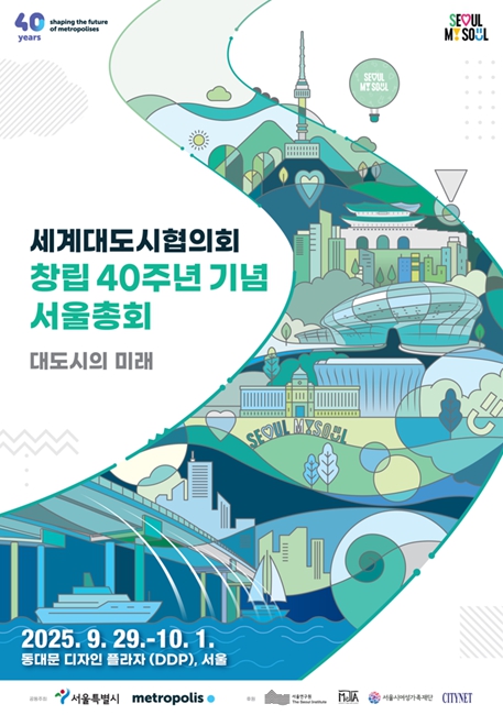 9월 29일(월)~10월 1일(수) 사흘간 동대문디자인플라자에서 「2025 세계대도시협의회 창립 40주년 기념 서울 총회」가 진행된다. 올해 총회는 제15차 회의로 세계대도시협의회(World Association of the Major Metropolises) 이른바 ‘메트로폴리스(Metropolis)’ 창립 40주년을 기념한 행사이며, 2002년 제7차 총회 이후 두 번째로 서울에서 개최된다.