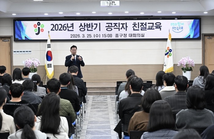 [파이낸셜경제=김영란 기자] 대전 중구는 25일 중구청 대회의실에서 공직자의 소통 능력 및 민원응대 역량 강화를 위해 직원 150여 명을 대상으로 ‘2026년 상반기 친절교육’을 실시했다고 밝혔다.