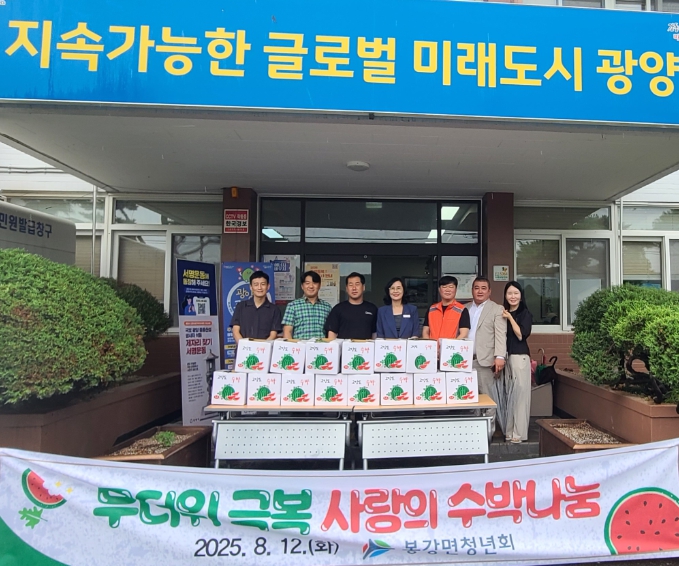 [파이낸셜경제=김예빈 기자] 광양시는 8월 12일 봉강면청년회(회장 정종호)가 봉강면 소재 경로당 23개소에 시원한 수박을 전달했다고 밝혔다.