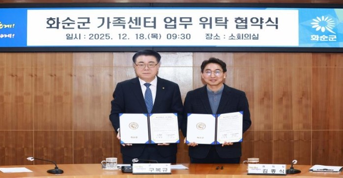 [파이낸셜경제=김예빈 기자] 화순군은 18일 화순군청 소회의실에서 (사)다사랑건강가정복지협회(회장 김종식)와 화순군 가족센터 업무 위탁 협약을 체결하고, 가족 지원 정책의 안정적 추진과 지역사회 돌봄 기반 확충에 나섰다고 밝혔다.