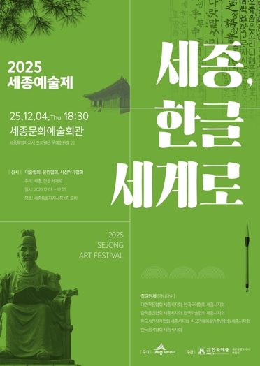 [파이낸셜경제=김영란 기자] 2025 세종예술제 ‘세종, 한글 세계로’가 1일부터 5일까지 세종시청과 세종문화예술회관 일원에서 열린다.