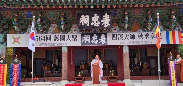 대한불교조계종 표충사(주지 진각) 주관으로 열린 사명대사 추계향사는 임진왜란 당시 승병을 이끌고 국난 극복에 앞장선 서산대사, 사명대사, 기허대사의 숭고한 충혼을 기리기 위한 국가 제향으로, 1744년(영조 20) 왕명으로 시작됐다. 특히 불교와 유교가 함께하는 합동 제향으로, 종교적·역사적 의미가 깊은 행사다.