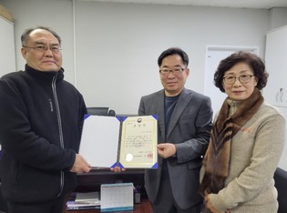 | ▲ 청주시, 2025년 조달서비스 이용 우수기관 선정(왼쪽부터 청주시 김지혜 주무관, 유효정 계약1팀장, 김용길 충북지방조달청장) |