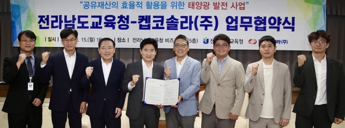 [파이낸셜경제=김예빈 기자] 전라남도교육청이 9월 15일 오후 청사 5층 비즈니스실에서 켑코솔라㈜와 ‘공유재산 태양광 발전사업 협약’을 체결했다.