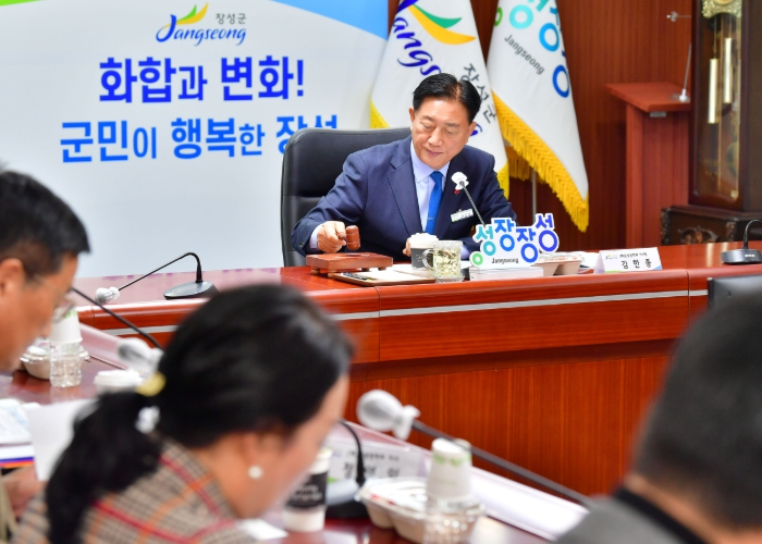 | ▲ (재)장성장학회 제2회 정기이사회를 주재 중인 김한종 이사장. 장성군 제공 |