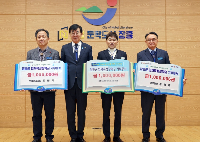 장흥군 관계자는 “연말을 맞아 지역사회 각계각층에서 인재 육성을 위한 따뜻한 나눔이 이어지고 있다”며 “기탁해주신 소중한 장학금은 지역 학생들의 성장과 미래를 위한 밑거름으로 책임 있게 사용하겠다”고 밝혔다.
