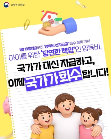 · 1월 19일(월)부터 '양육비 선지급금' 회수 절차 개시