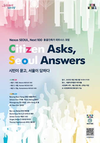 『Nexus 서울 Next100: 제2차 총괄건축가 파트너스 포럼』은 서울시 누리집에서 9월 23일부터 선착순 사전 등록한 시민만 참석가능하다.