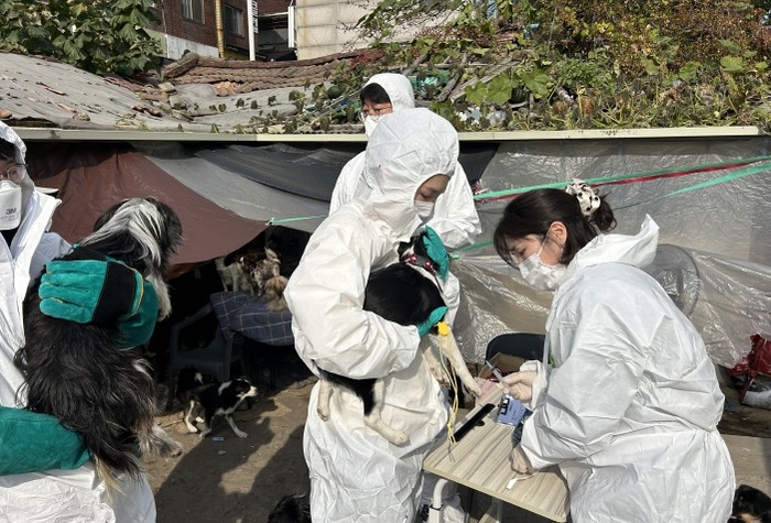 | ▲ 긴급 구조된 개들이 백신을 접종하는 모습 |