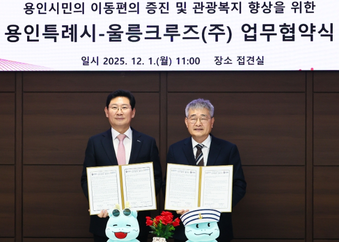 [파이낸셜경제=김기보 기자] 용인특례시는 1일 시청 4층 접견실에서 울릉크루즈㈜와 ‘용인시민 이동편의 증진 및 관광복지 향상을 위한 업무협약’을 체결했다고 밝혔다.