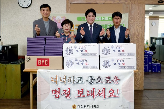 [파이낸셜경제=김영란 기자] 대전시의회 김선광 예산결산특별위원장(중구2, 국민의힘)은 추석 명절을 맞아, 24일 관내 대전노인복지센터를 방문하고 위문품을 전달했다.