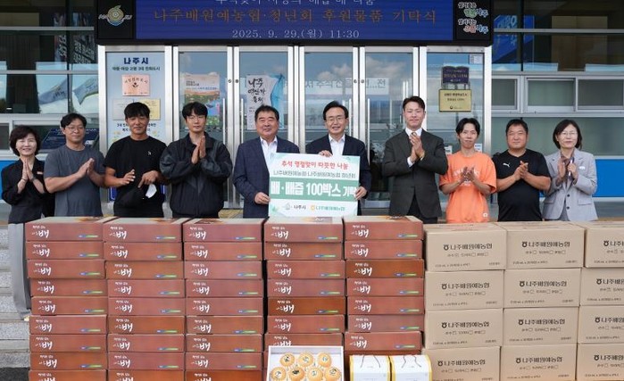 윤병태 나주시장은 “지역의 어려운 가정을 위해 정성 어린 선물을 마련해 주신 나주배원예농협과 청년회에 깊은 감사를 드린다”며 “기탁품은 필요한 가정에 신속히 전달하겠다”고 밝혔다.
