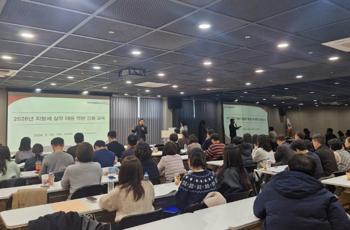 교육은 내부 실무 담당 공무원 3명이 강사로 참여하여 △지방세 컨설팅 점검과 세원 발굴 사례 공유 △2026년 지방세 관계법 주요 개정사항과 과세 운영 방향 안내 △납세자 권익보호제도 설명 및 우수 사례 소개 등 실무에서 즉시 활용 가능한 내용으로 진행됐다.