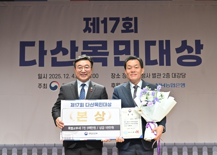 행정안전부가 주최하는 다산목민대상은 정약용 선생의 목민(牧民) 정신을 행정 현장에서 구현하고, 시민을 위한 창의적인 시책을 추진한 기초 지방정부에 수여하는 상이다. 서면 심사, 현지 실사, 2차 심사(발표·질의응답)를 거쳐 대상(대통령상) 1개 지방정부, 본상 2개 지방정부를 선정한다. 본상을 받은 지방정부에는 부상으로 상금 1000만 원과 특별교부세 7500만 원을 수여한다.