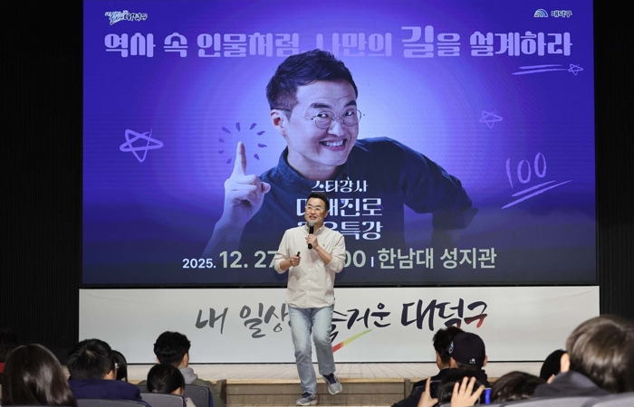 [파이낸셜경제=김영란 기자] 대전 대덕구는 지난 27일 한남대학교 성지관에서 한국사 스타강사 최태성 씨를 초청해 ‘미래진로 교육특강’을 성황리에 마무리했다.