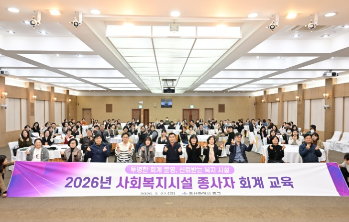 [파이낸셜경제=김예빈 기자] 울산 중구는 3월 27일 오후 4시 중구청 대회의실에서 사회복지시설 종사자 130여 명을 대상으로 2026년 회계 교육을 실시했다.