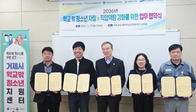 [파이낸셜경제=김예빈 기자] 거제시학교밖청소년지원센터는 지난 27일 센터 교육실에서‘2026년 학교 밖 청소년 자립 및 직업역량 강화를 위한 업무협약(MOU)’를 체결했다.