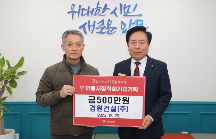 경원건설㈜과 93연합동기백범회는 지난 26일 안동시청 시장실에서 안동시장학회에 장학기금을 각각 전달했다. 이날 전달식에는 권기창 안동시장학회 이사장과 두 단체 관계자들이 참석해 지역 학생들의 꿈을 응원하는 마음을 전했다.